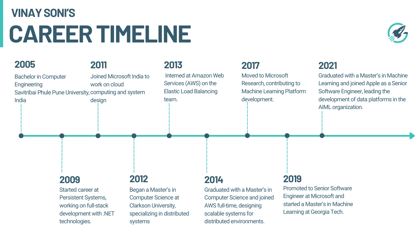 Now, as a senior engineer at Apple, Vinay builds large-scale data platforms from scratch. His journey shows how determination, adaptability, and continuous learning can help overcome challenges and build a rewarding career in technology.